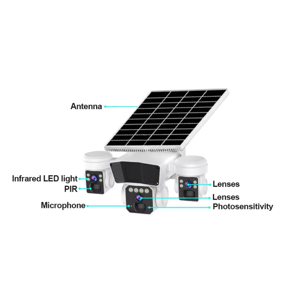Jana กล้องโดมพลังงานแสงอาทิตย์3ตาสำหรับกลางแจ้ง, กล้องโดมพลังงานแสงอาทิตย์มีรีโมทควบคุมมือถือ4G เซ็นเซอร์ CMOS จัดเก็บข้อมูลคลาวด์และรับประกัน1ปี
