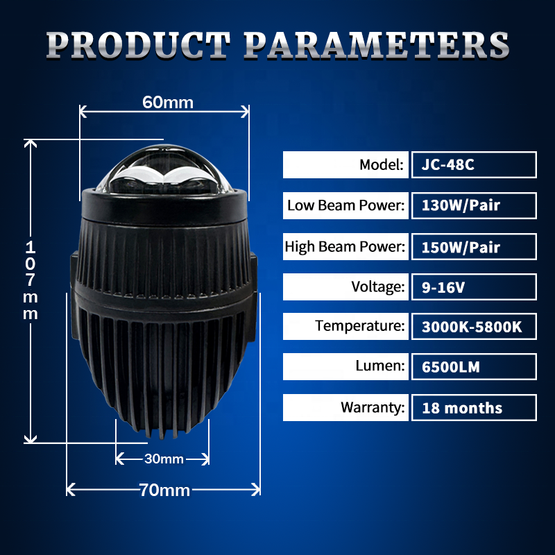 ไฟตัดหมอก JC-48C ราคาถูกที่สุด 180 วัน ไฟตัดหมอกขนาด 2 นิ้ว 150W โปรเจคเตอร์เลนส์ Bi LED แสงเลเซอร์คู่ ไฟตัดหมอกคู่