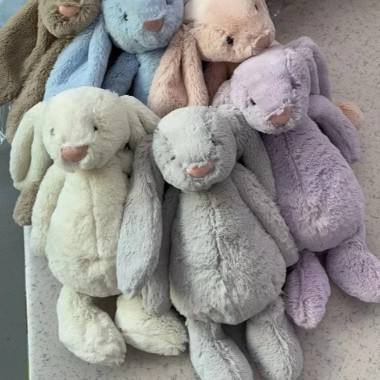 JC ชุดคอลเล็คชั่น BONNIE Rabbit รูปหัวใจสำหรับดอกไม้สีชมพูอ่อนของเล่นผ้าฝ้าย PP กำมะหยี่31-50ซม.