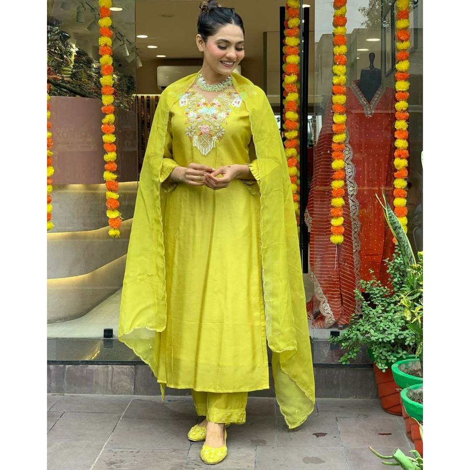 JC ชุดปาร์ตี้สีเหลืองใส่สบายไซส์ XL ชุดเสื้อและล่างสุดเก๋