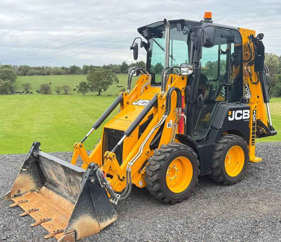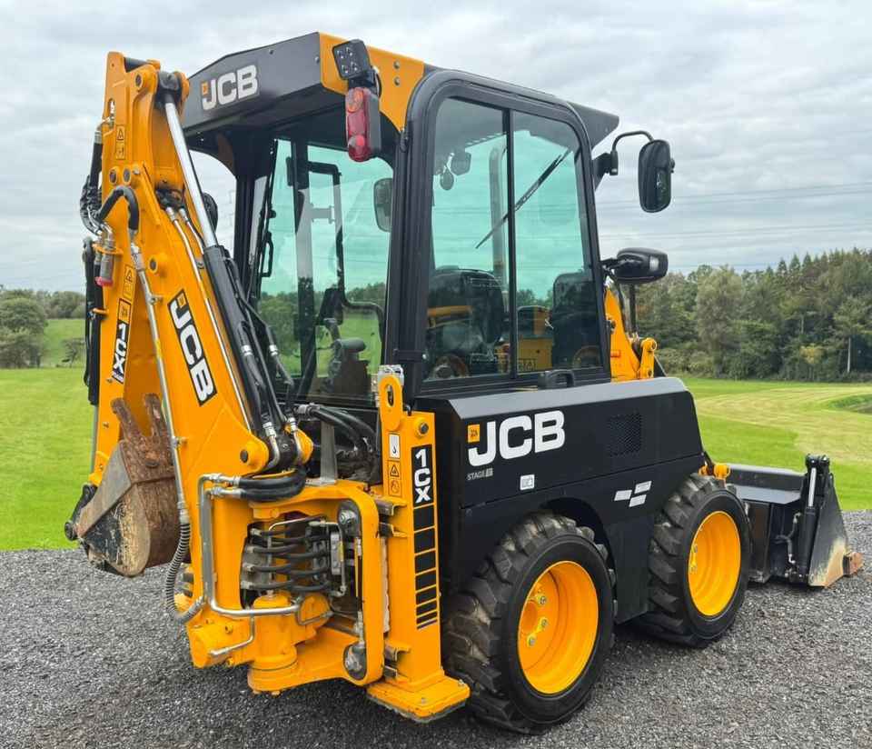 รถตักล้อยาง JCB 1CX ขนาดกะทัดรัด ขับเคลื่อน 4 ล้อ เครื่องยนต์ดีเซล สำหรับงานก่อสร้าง พร้อมที่ตักด้านหน้าและที่ขุดด้านหลัง