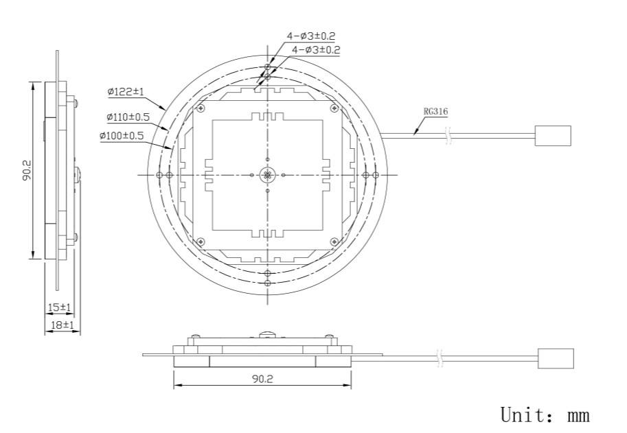 ข้อผิดพลาดของจุดศูนย์กลางเฟส:±2 มม.