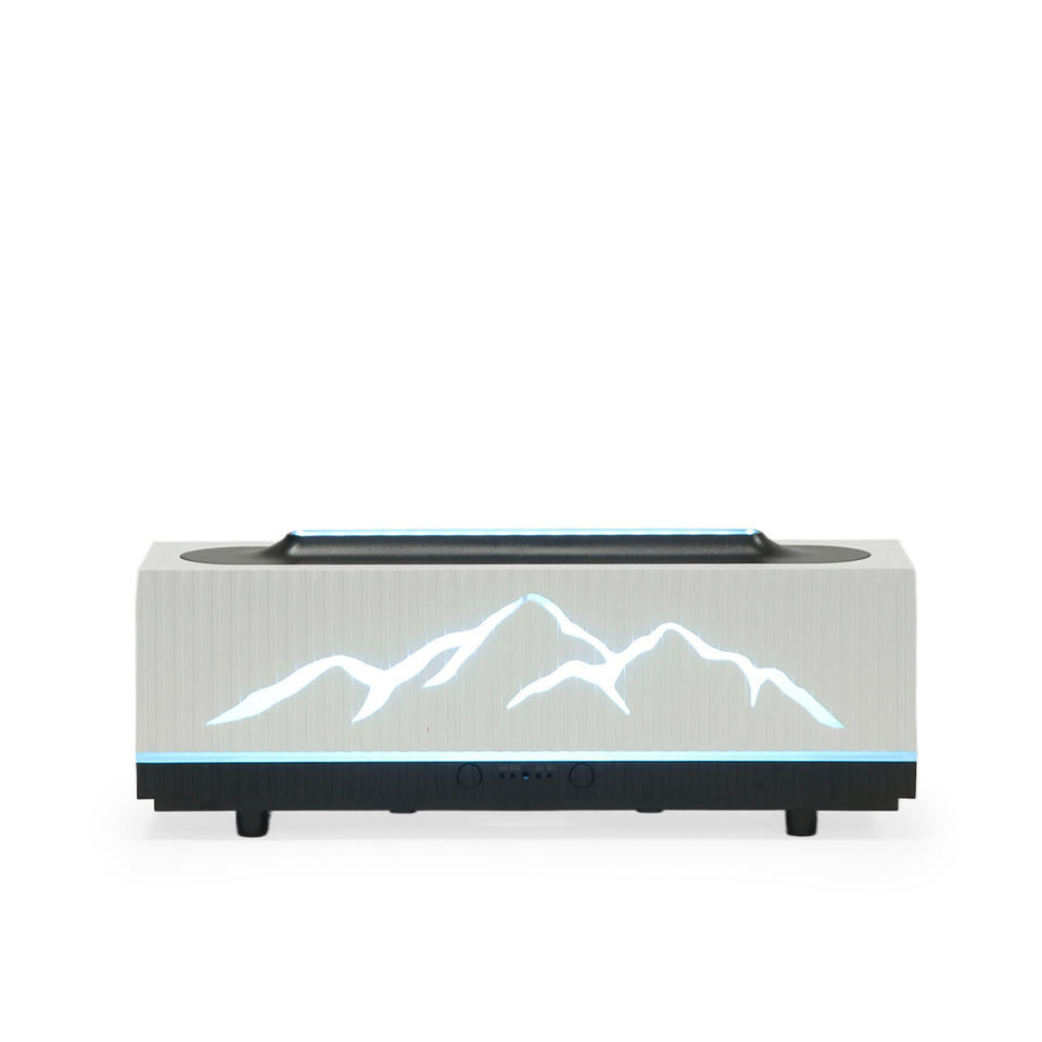 เครื่องกระจายกลิ่นหอม JCSY 0.5 ลิตร เครื่องเพิ่มความชื้นแบบอัลตราโซนิกแบบเสียบปลั๊ก USB พร้อมไฟสีฟ้าลายภูเขาสำหรับใช้ในบ้านและเชิงพาณิชย์