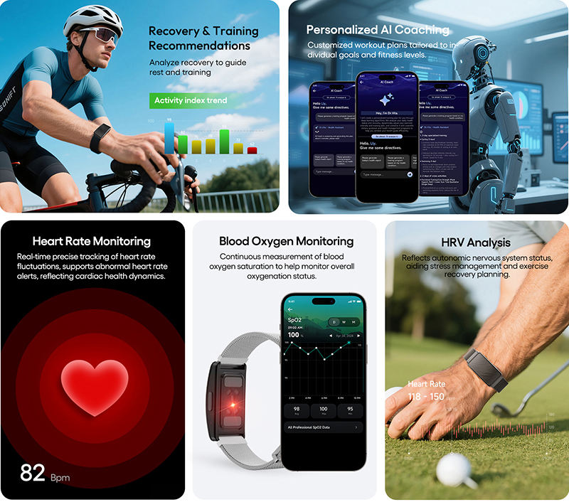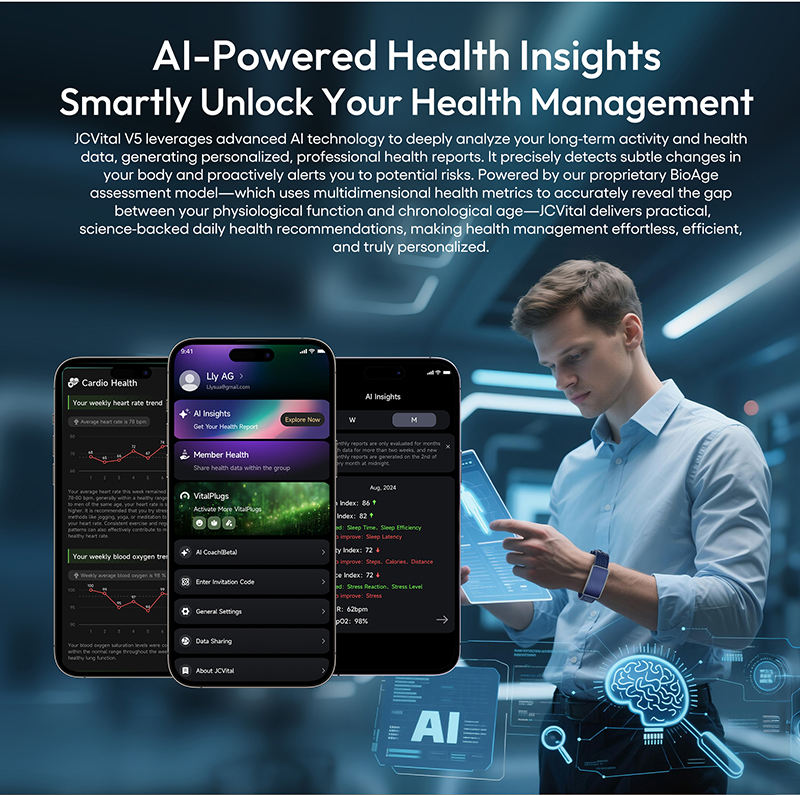 JCVital V5 สมาร์ทแบนด์ไร้หน้าจอ 170 โหมดกีฬา ระยะเวลาสแตนด์บาย 100 วัน ตรวจสุขภาพตลอด 24 ชั่วโมง ตรวจวัดออกซิเจนในเลือด ติดตามกิจกรรม