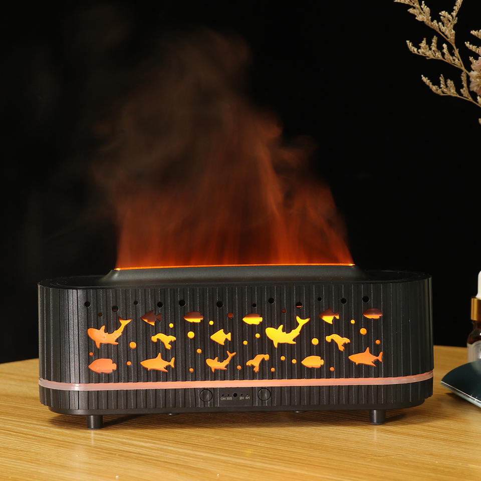 JCYS เครื่องกระจายกลิ่นหอมแบบอัลตราโซนิก 0.5 ลิตร ดีไซน์ลายไม้ ลายปลาทะเล ไฟ LED ใช้ในบ้านและสำนักงาน
