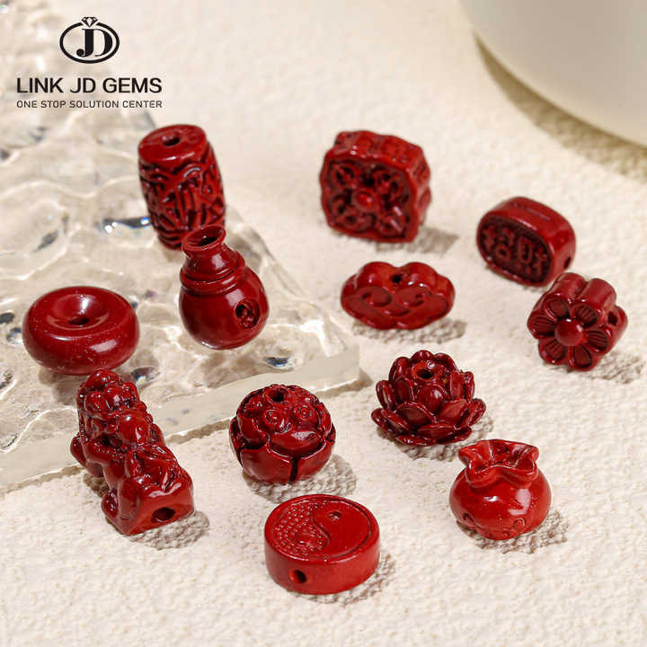 JD GEMS ของแท้สีม่วงเดี่ยวลูกปัดพระพุทธรูป Cinnabar แกะสลักดอกบัว Pixiu รูปร่างสีม่วงธรรมชาติ Cinnabar หลวม Charm ลูกปัด