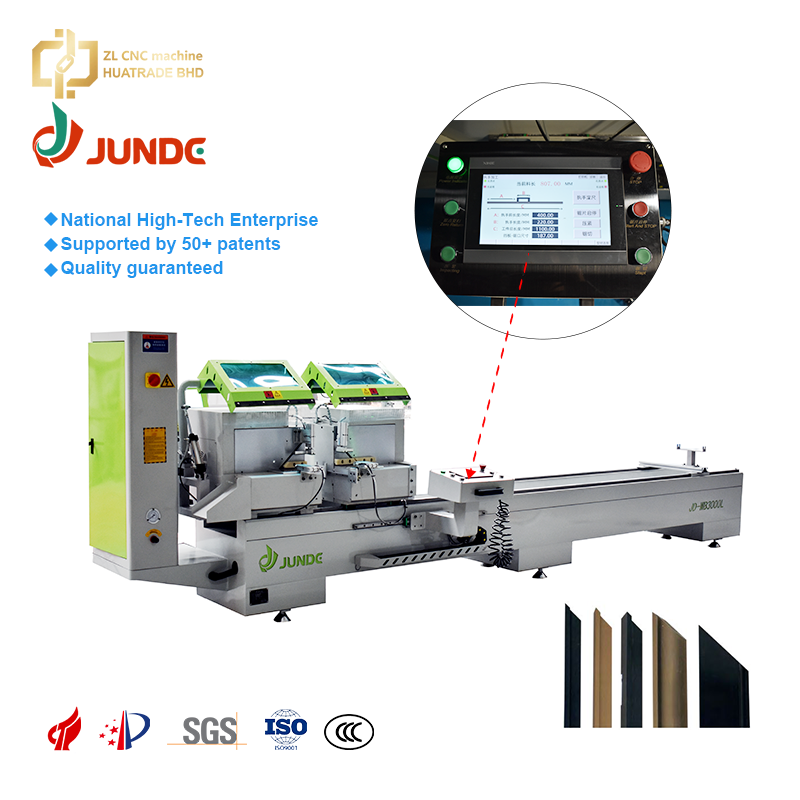 เครื่องเลื่อยสองหัว JD - WB3000 ระบบป้อนอัตโนมัติ CNC แกว่งภายใน ไม่ต้องวัดความสูงวัสดุ สำหรับประตูกระจกแบบมินิมอล