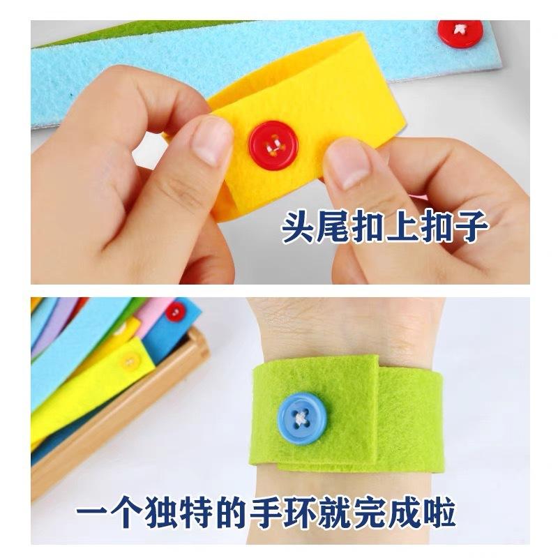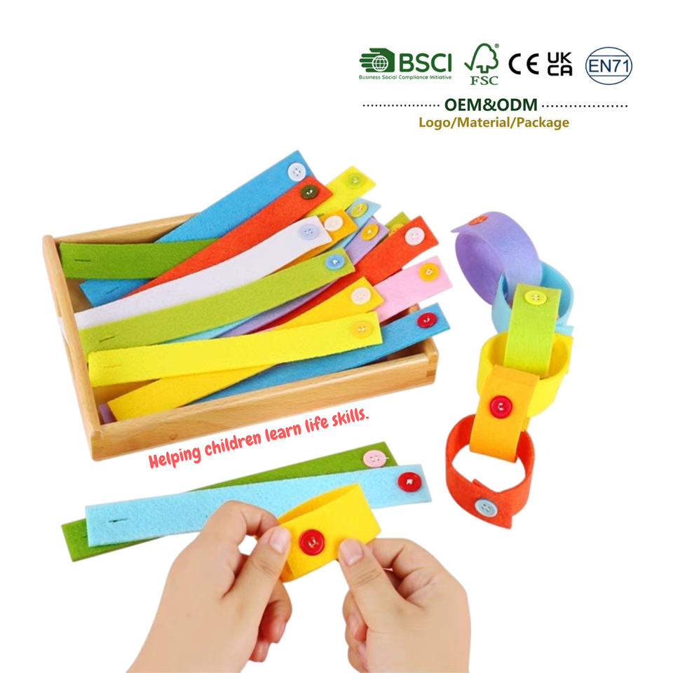 ของเล่น JET OEM แบบมอนเตสซอรี่ ชุดอุปกรณ์การเรียนรู้ DIY ของเล่นเสริมพัฒนาการสำหรับเด็กก่อนวัยเรียน สร้อยข้อมือกระดุมผ้าสักหลาดสำหรับเด็ก