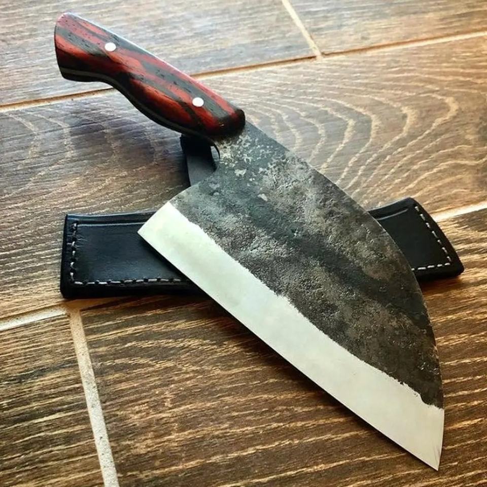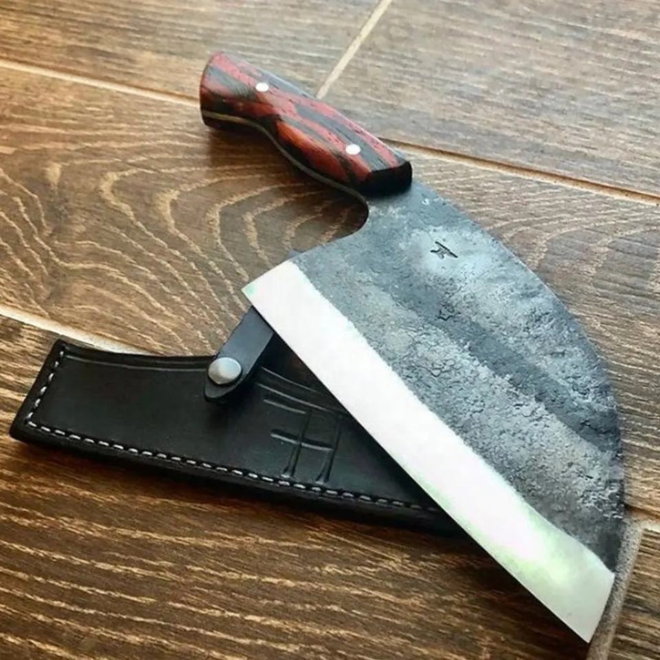 มีดเชฟเหล็กกล้าคาร์บอนทำมือ JEXMOO แบบมัลติฟังก์ชั่น พร้อมปลอกหนังสำหรับใช้ในครัว