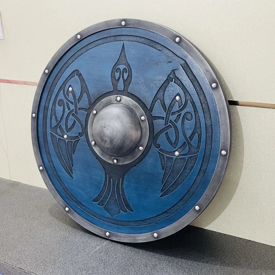 มีดแคมป์ปิ้ง JEXMOO ทำมือ ขนาด 24 นิ้ว เหล็กกล้าคาร์บอนสูง ดีไซน์ลายโล่ไวกิ้ง ด้ามหนัง ปรับแต่งได้ รองรับ OEM/ODM