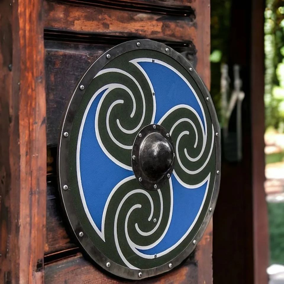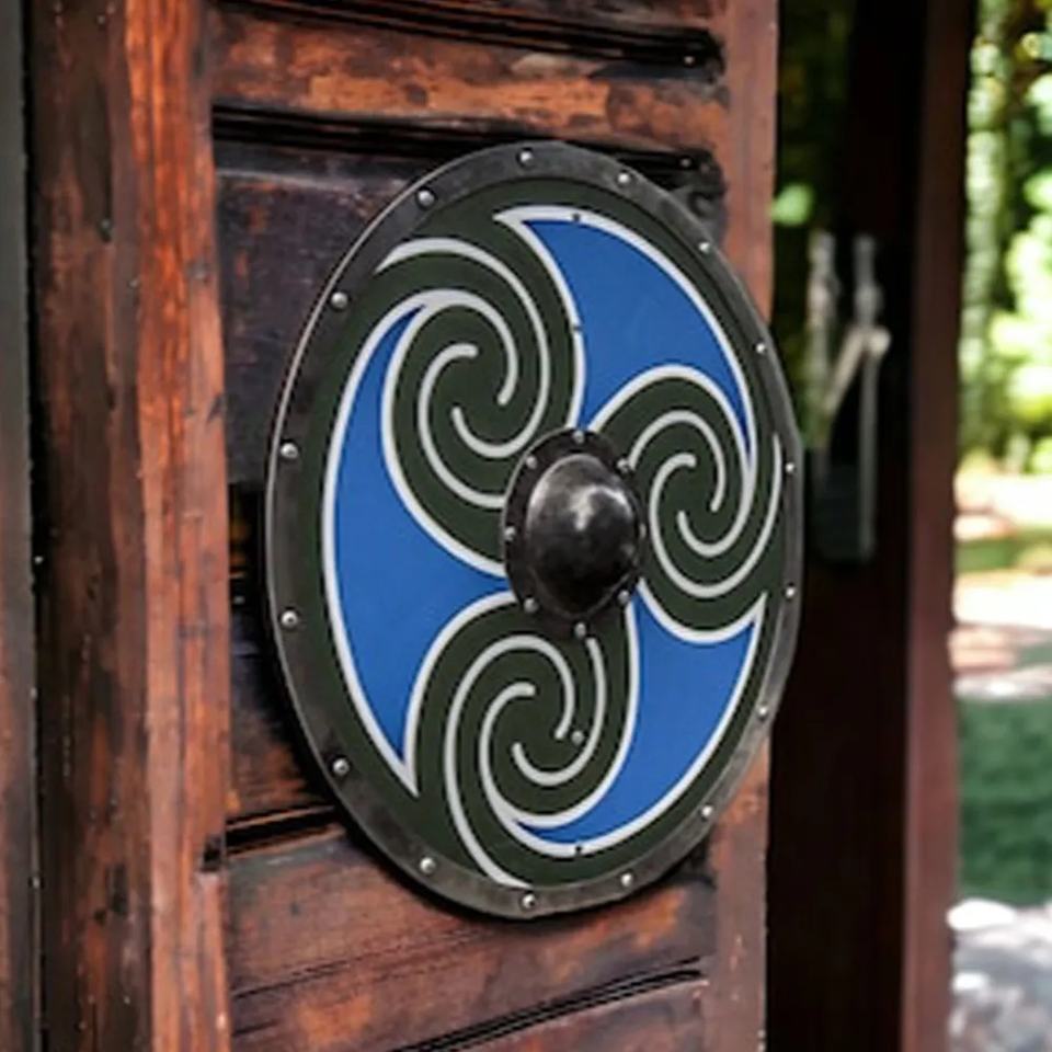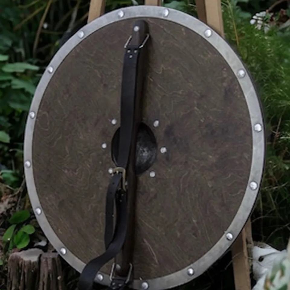 โล่ไวกิ้ง JEXMOO ทำมือ ขนาด 24 นิ้ว ทำจากไม้และเหล็กกล้าคาร์บอนสูง ดีไซน์แบบมีฐานตรงกลาง พร้อมรองรับการปรับแต่งและใช้งานร่วมกันได้