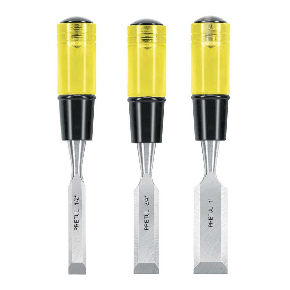 JFP-3 Set of 3 Paring Cold Carving Chisels for Woodwork and Carving Flat Tip DIY Grade Steel and Beech Handle