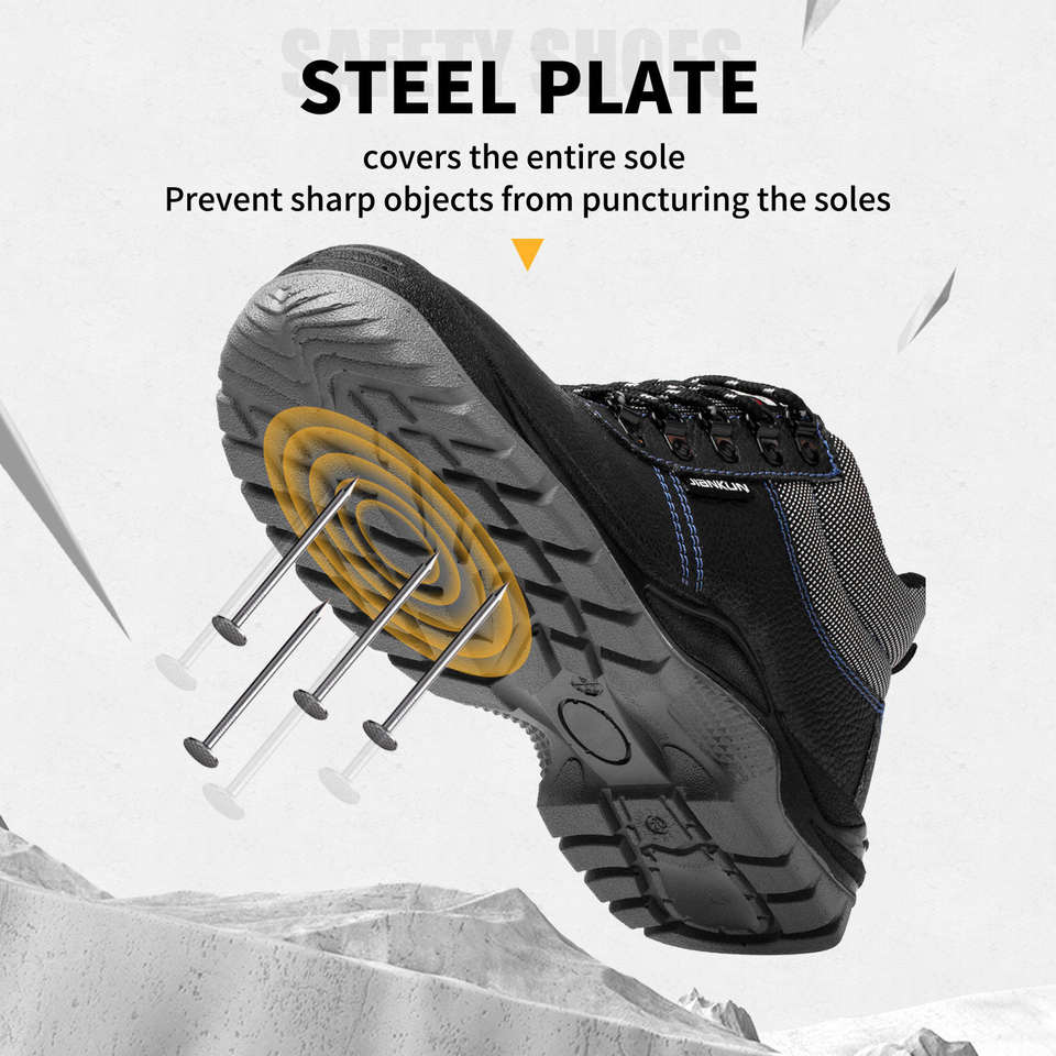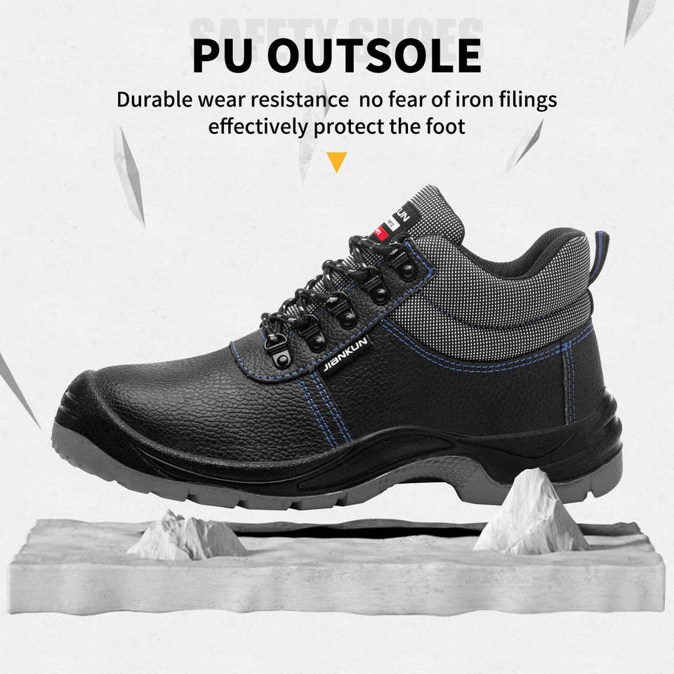 Jiankun รองเท้านิรภัยผู้ชายที่ผ่านการรับรอง CE, รองเท้านิรภัยเหล็กกันแตกกันการเจาะแผ่นเหล็กหนังไมโครไฟเบอร์กันน้ำ