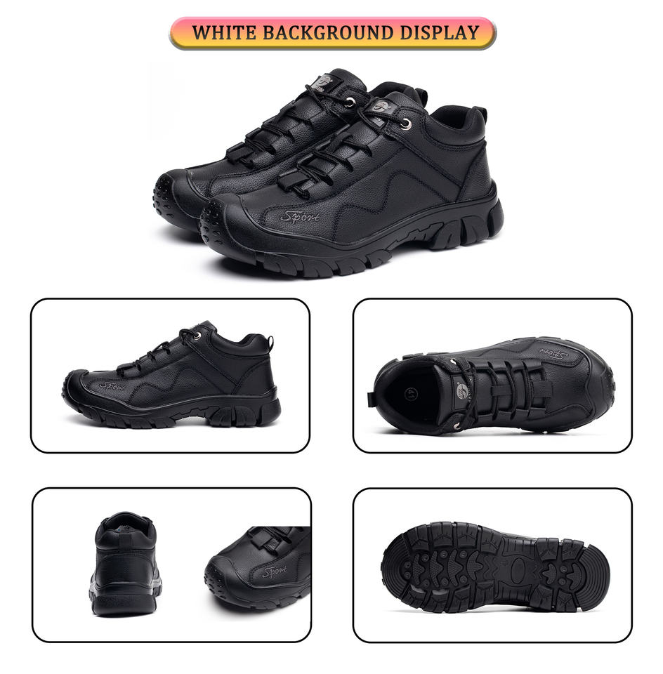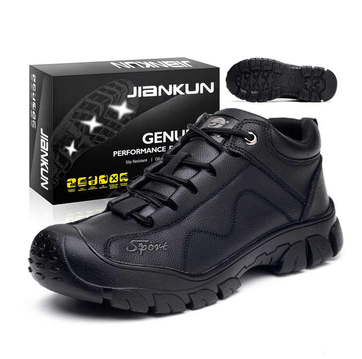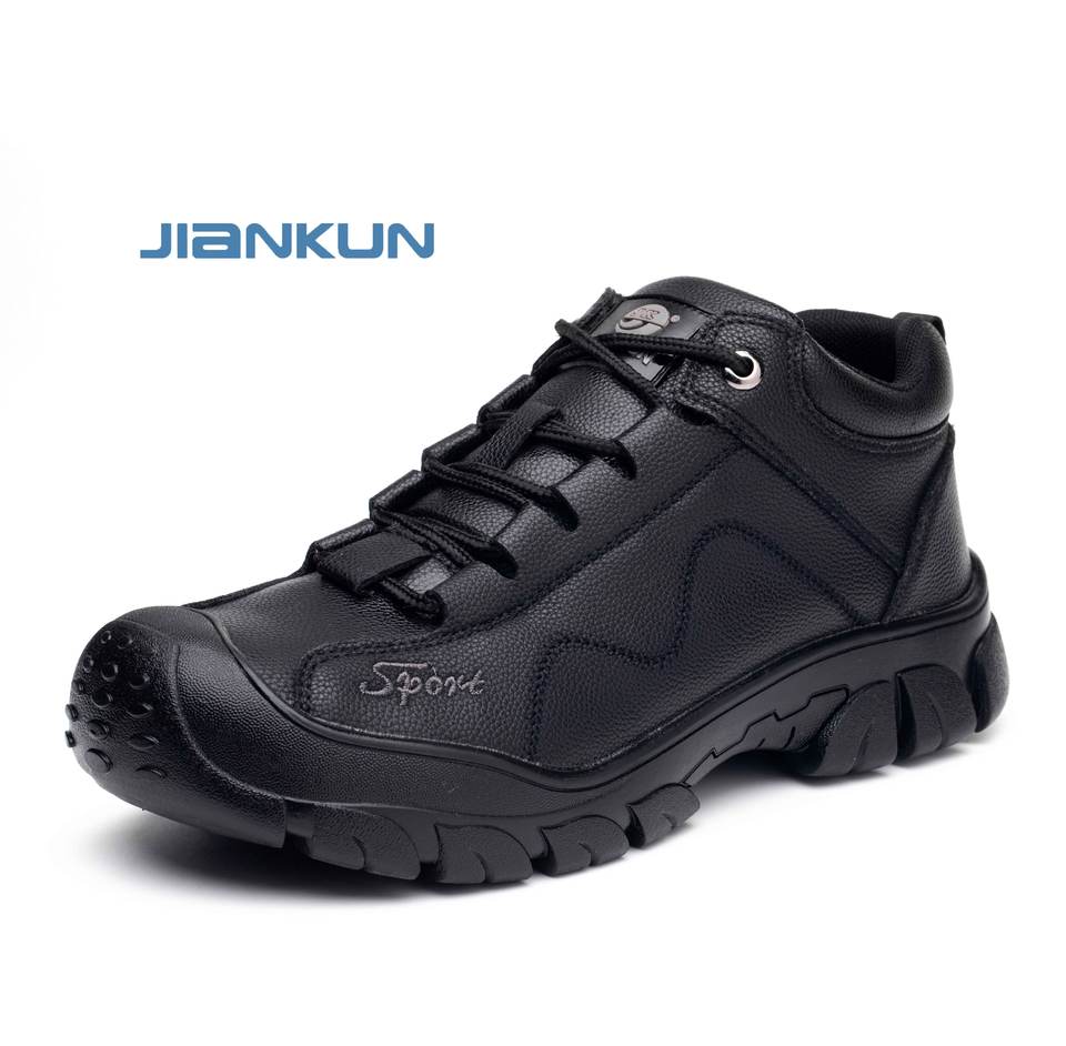 รองเท้าทำงานฤดูหนาวสำหรับผู้ชาย JIANKUN หัวเหล็ก ป้องกันการกระแทก/เจาะทะลุ กันน้ำ คุณภาพสูง หนังไมโครไฟเบอร์ พื้นยางกันลื่น