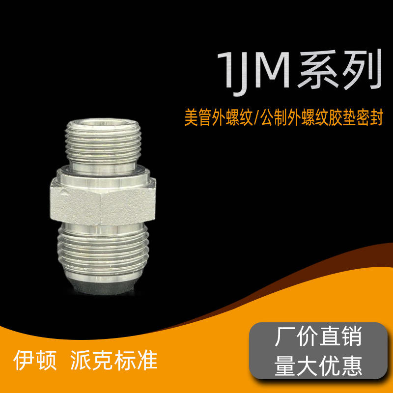 ข้อต่อไฮดรอลิกแบบเกลียว JIC ชนิด D 74 ซีลเรียว ขนาดเกลียวเมตริก พร้อมปะเก็นยางและแหวนซีล ED รุ่น 1JM-WD