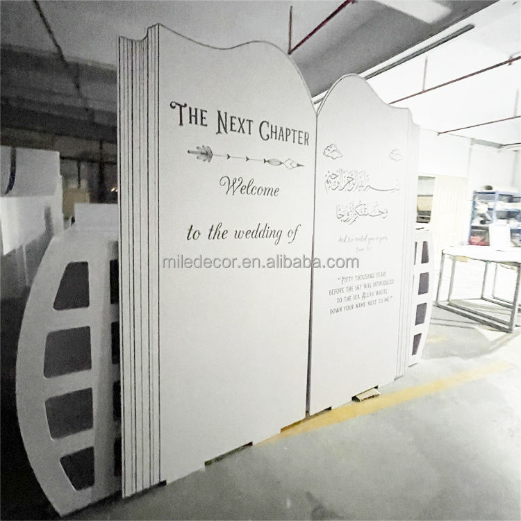 ฉากหลังงานแต่งงานอะคริลิคสีขาวแบบหนังสือ PVC ดีไซน์พิเศษจาก JINDA สำหรับตกแต่งงานเลี้ยงฉลองสมรส