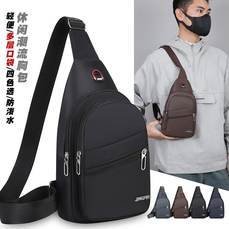 JINGPIN กระเป๋าคาดหน้าอกผู้ชายผ้าอ็อกซ์ฟอร์ดกันน้ำกระเป๋าเดินทางแบบสะพายข้างสีน้ำเงินเข้มสีเทาเข้มสีดำสีน้ำตาลสีทึบ