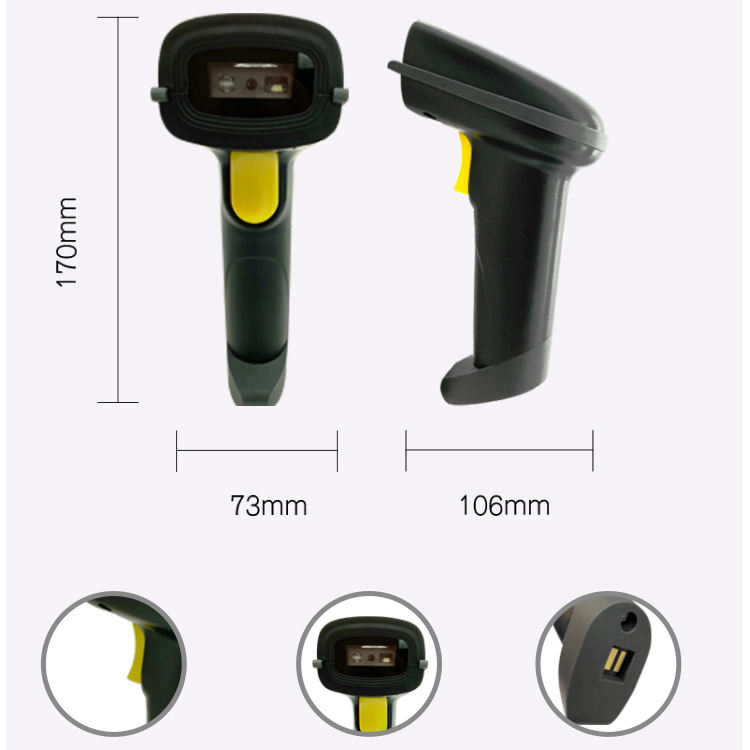 เครื่องสแกนบาร์โค้ดแบบใช้มือจับมีปุ่มทดสอบสำหรับร้านขายเสื้อผ้าที่ทนทานมีปุ่มจัดการ1000,000ของ Jingxin