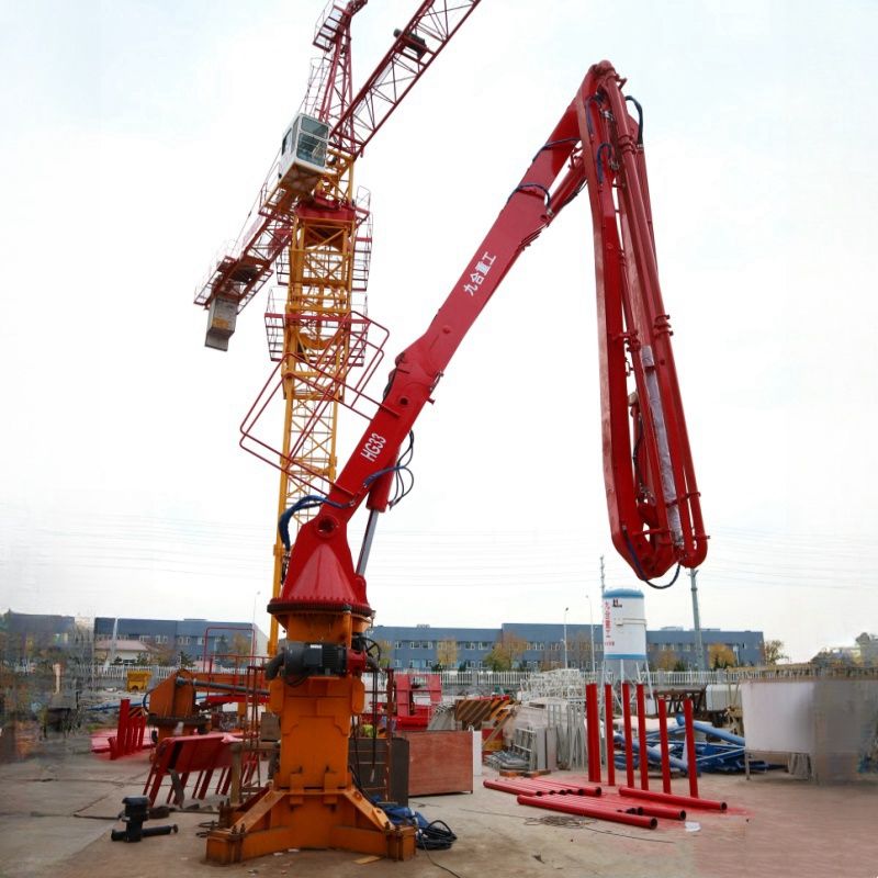 ปั๊มคอนกรีตไฮดรอลิกแบบปีนพื้น 33 เมตร ยี่ห้อ JIUHE คุณภาพสูง โครงสร้างเหล็ก สำหรับวางคอนกรีต