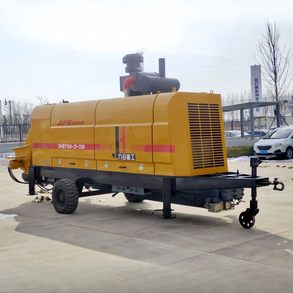 ปั๊มคอนกรีตติดตั้งบนรถพ่วง JIUHE ประสิทธิภาพสูง ปั๊มคอนกรีตแบบใช้เครื่องยนต์ดีเซลและไฟฟ้าสำหรับงานก่อสร้างใหม่