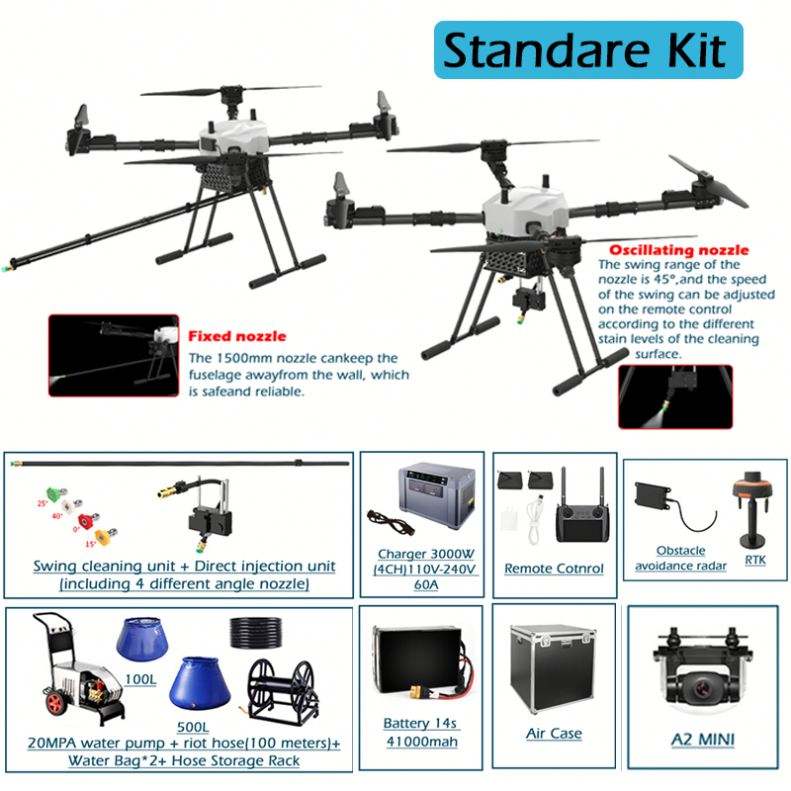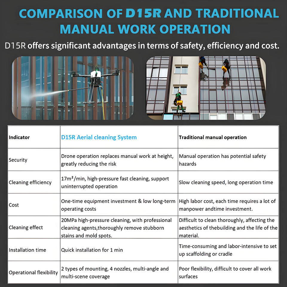 Jiusi ดรอนทำความสะอาดกระจก D15R ทำความสะอาดหน้าต่าง dron
