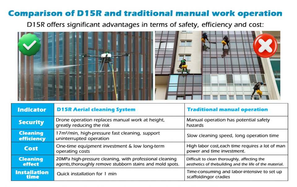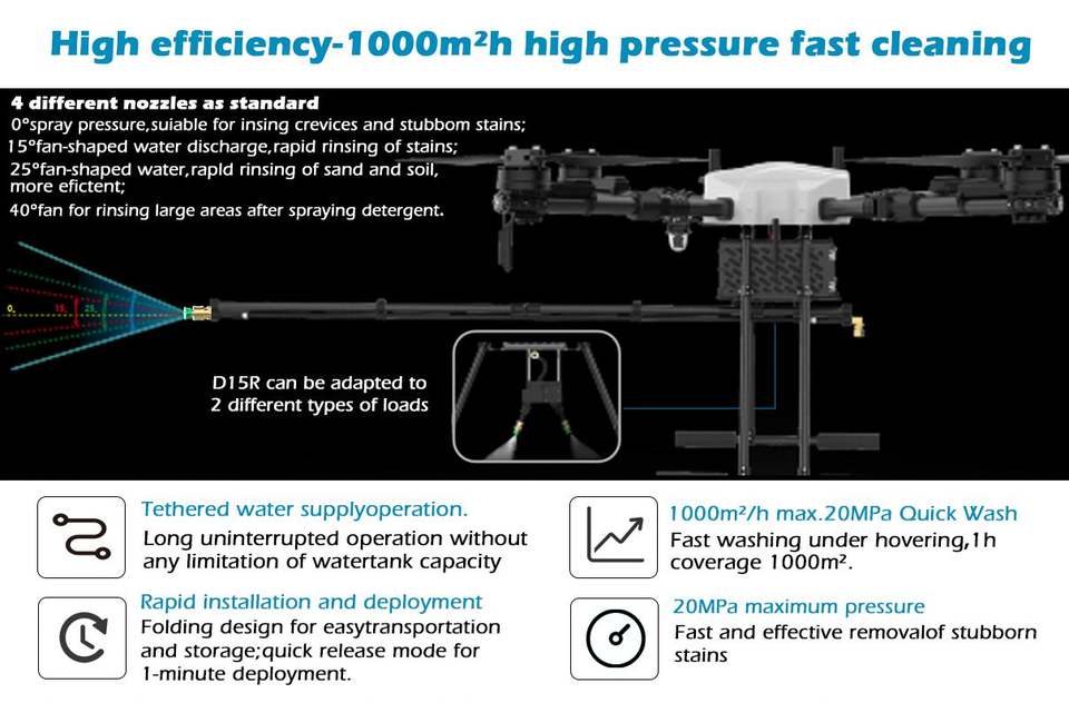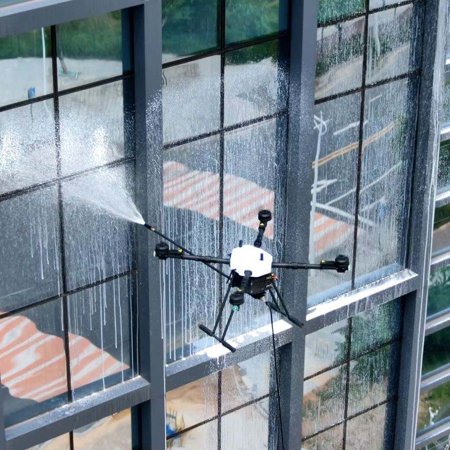 โดรนทำความสะอาดกระจกแรงดันสูงระดับมืออาชีพ JIUSI D15R สำหรับทำความสะอาดหน้าอาคาร หอคอย แผงโซลาร์เซลล์ หลังคา และกระจก