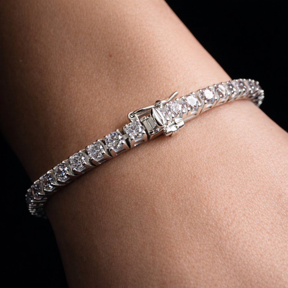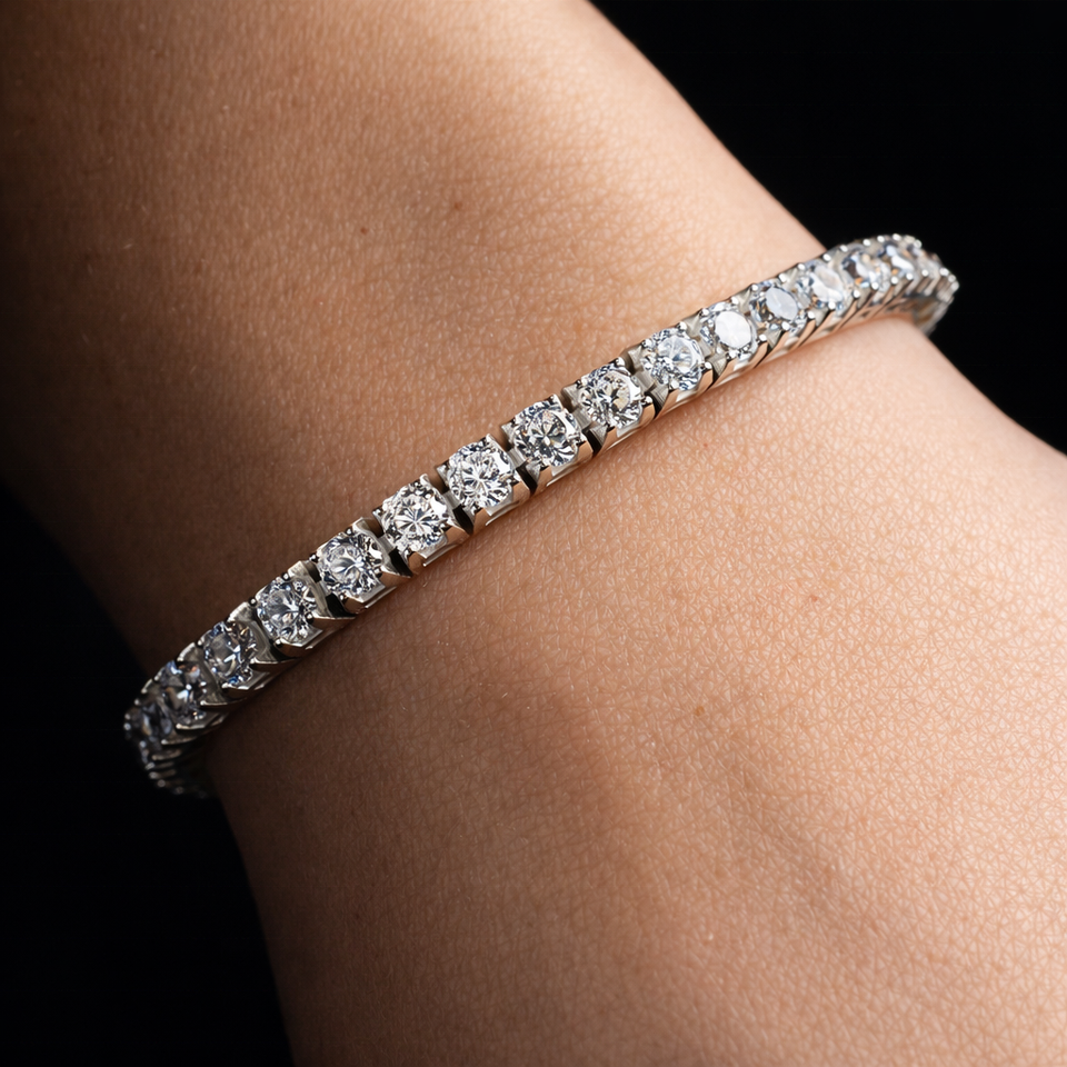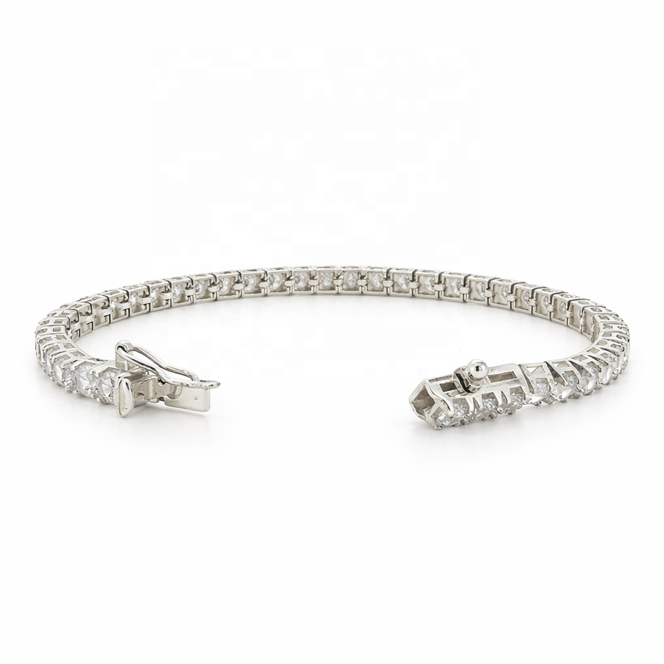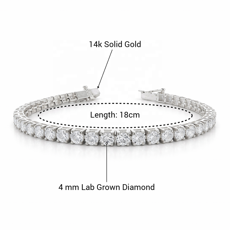 สร้อยข้อมือเทนนิส JJ BRAVO ทองคำขาว 14K ชุบโรเดียม ประดับเพชรเลี้ยงในห้องปฏิบัติการขนาด 4 มม. ความยาว 18 ซม. เหมาะสำหรับทั้งชายและหญิง เครื่องประดับคลาสสิกสุดหรู ของขวัญสำหรับงานแต่งงาน