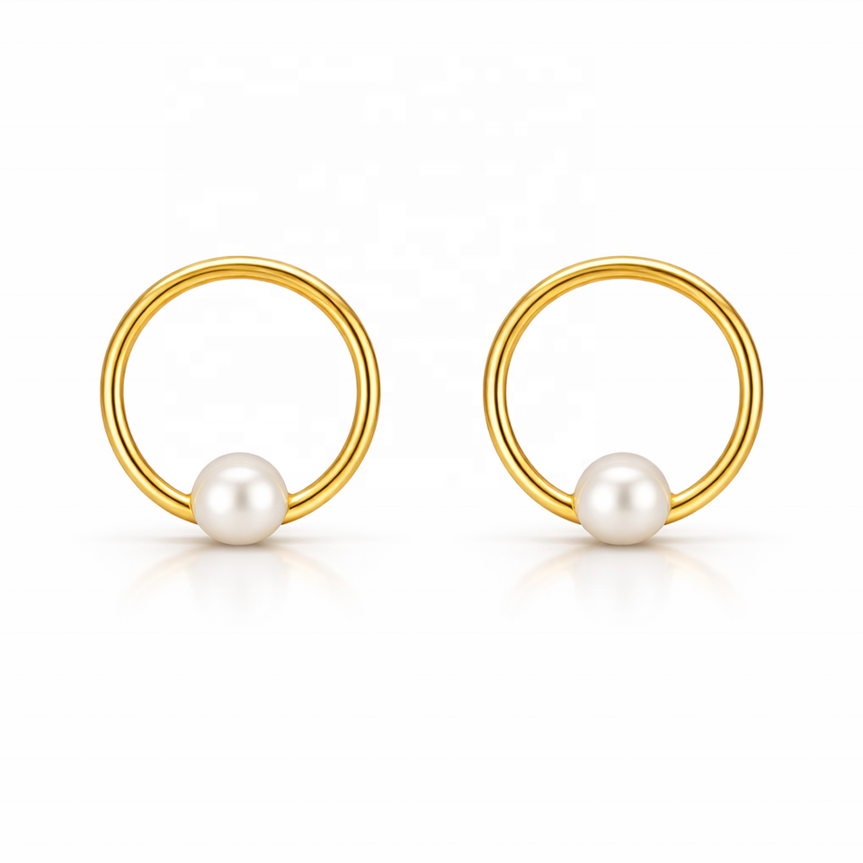JJ BRAVO 14K สีเหลืองทองมินิมอลลิสต์เรขาคณิตต่างหูห่วงแฮนด์เมดไข่มุกน้ำจืดเครื่องประดับผู้หญิงงานแต่งงานและงานปาร์ตี้