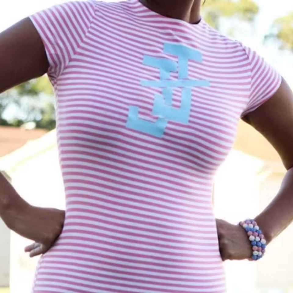 เดรสลายทาง JJ แขนสั้นทรงเข้ารูปลำตัว สไตล์ลำลองสำหรับฤดูร้อน ผ้าฝ้ายยืดหยุ่น กระชับรูปร่าง แฟชั่นสตรีทแวร์ รับสกรีนโลโก้