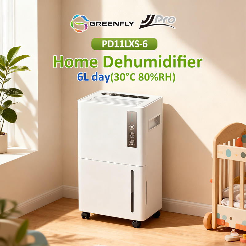 JJPRO GREENFLY 2025 PD11LXS เครื่องลดความชื้นแบบพกพา เสียงเบา ขายส่ง ความจุ 6 ลิตร ดีไซน์ใหม่กะทัดรัด สำหรับใช้ในครัวเรือน