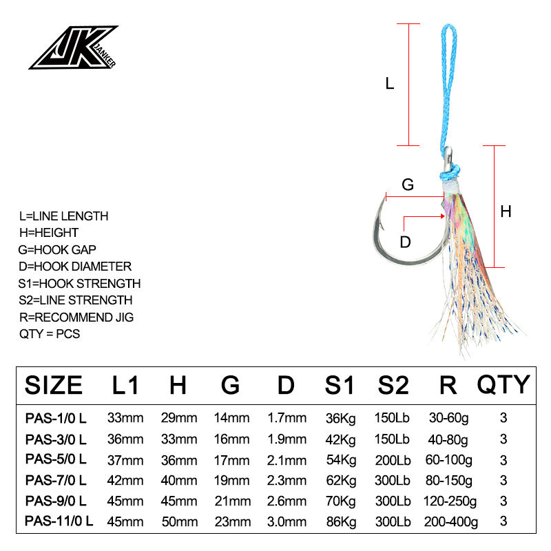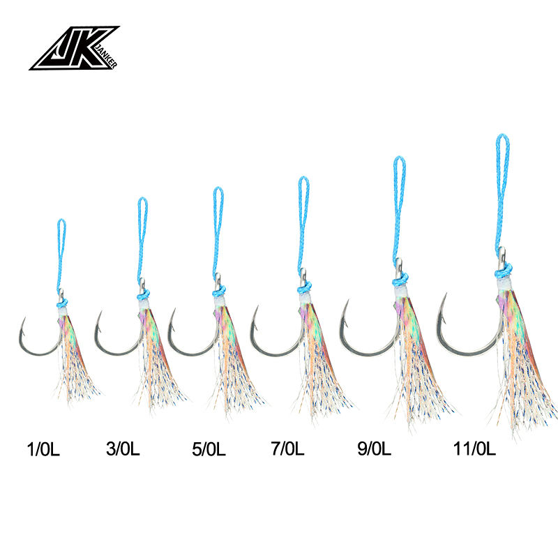 JK เบ็ดตกปลาเรืองแสงมีขนทำจากสเตนเลสขนาดใหญ่,ตะขอตกปลาตกปลาในทะเล Mata Kail Memancing Laut ปี4X