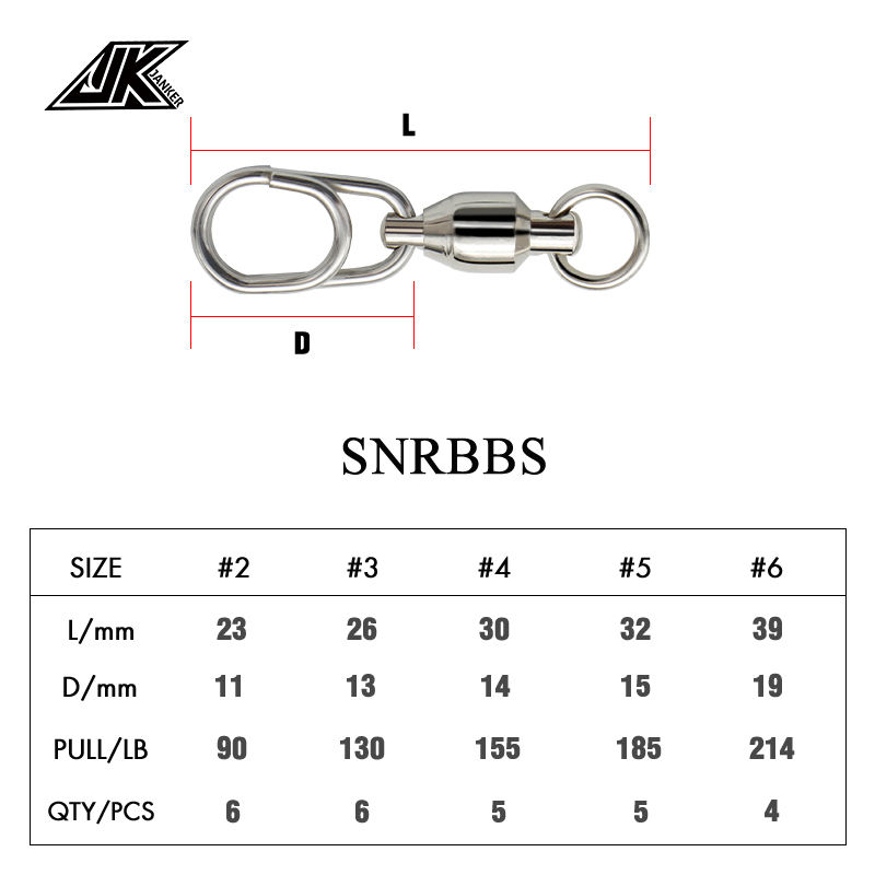 ตัวเชื่อมต่ออุปกรณ์ตกปลาทะเล JK SNRBBS แบบลูกปืนคู่พร้อมหมุดรูปไข่