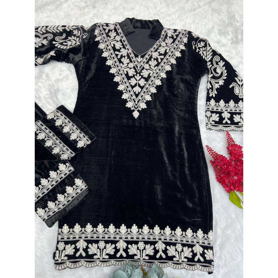 JL Designer Women's Black Party Wear Cord Set with Embroidery Thread Work Size L