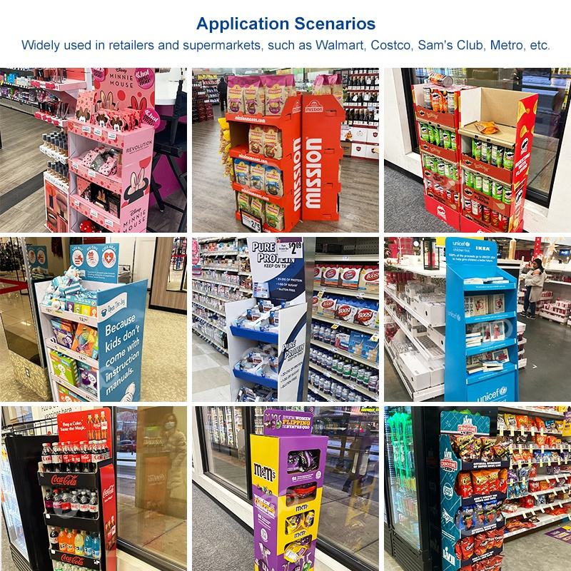 ชั้นวางสินค้าซุปเปอร์มาร์เก็ตสำหรับขวดน้ำกันแดด JL082 ชั้นวางกระดาษแข็งตั้งพื้นสำหรับแสดงสินค้า ชั้นวางเสื้อผ้า ชั้นวางรองเท้า