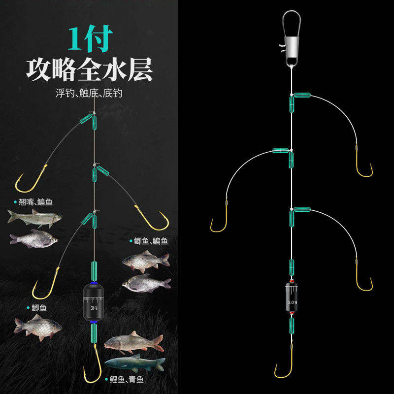 ชุดสายเบ็ดตกปลา JLRJS53J แบบหลายตะขอ 4 ตะขอ พร้อมสายผูกสำเร็จรูป สำหรับตกปลาในน้ำจืด ใช้ได้กับริมฝั่ง บ่อ หรืออ่างเก็บน้ำ