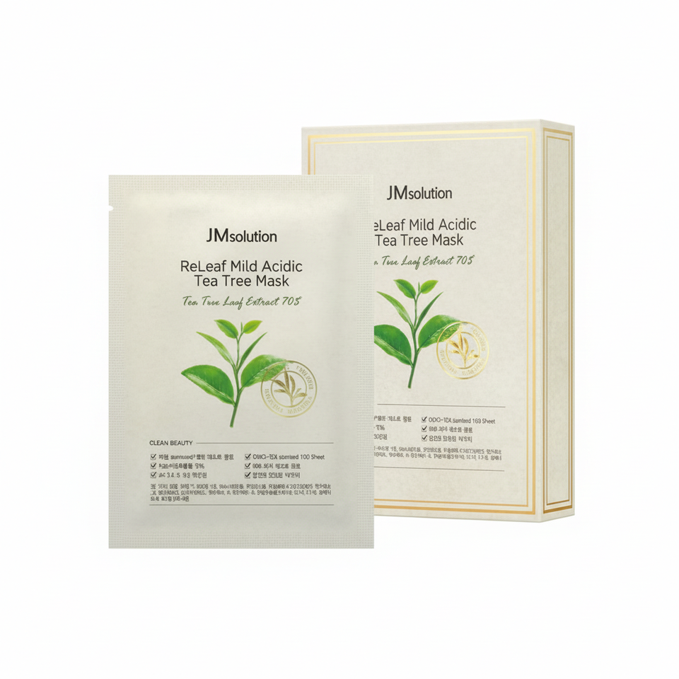 JM โซลูชั่นมาสก์บรรเทาใบหน้าแพ็คต้นไม้ชาที่เป็นกรดอย่างอ่อนโยนบรรเทา