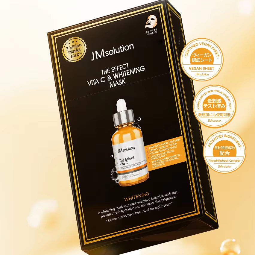 JMsolution หน้ากากไวเทนนิ่ง Vita C ทำจากเกาหลีแผ่นมาส์กเพิ่มความกระจ่างใสสำหรับการแก้ไขจุดด่างดำผิวเรืองแสง