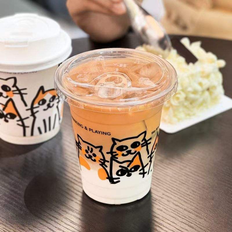 JN ถ้วยกาแฟน้ำแข็งแบบหนาแบบใช้แล้วทิ้งแบบใสสไตล์อเมริกันถ้วยลาเต้พลาสติกสำหรับใส่น้ำนมชา