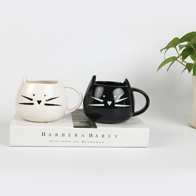 แก้วเซรามิคลายแมวน่ารัก JNSM แก้วพอร์ซเลนรักษ์โลก สีขาวดำ ลายหน้าแมวการ์ตูน สำหรับดื่มน้ำ/กาแฟ เหมาะสำหรับน้ำชายามบ่าย
