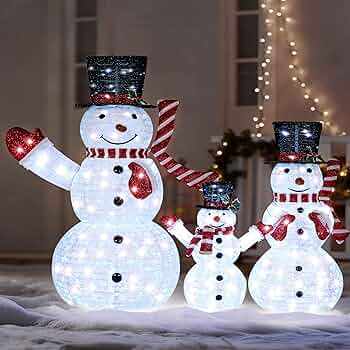 ไฟประดับตกแต่งสวนรูปตุ๊กตาหิมะพับได้ JOIEDOMI 3 ชิ้น แบบ 3 มิติ สำหรับเทศกาลคริสต์มาส พร้อมไฟ LED สีขาวโทนเย็น 270 ดวง สำหรับตกแต่งภายใน