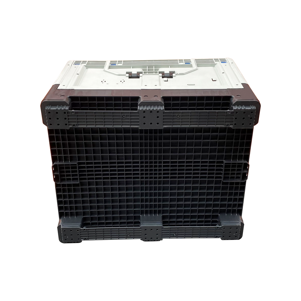 กล่องพลาสติกพับได้สีเทา สองประตู ด้านยาว สำหรับเก็บสินค้าที่เปราะบาง ไม่มีฝาปิด