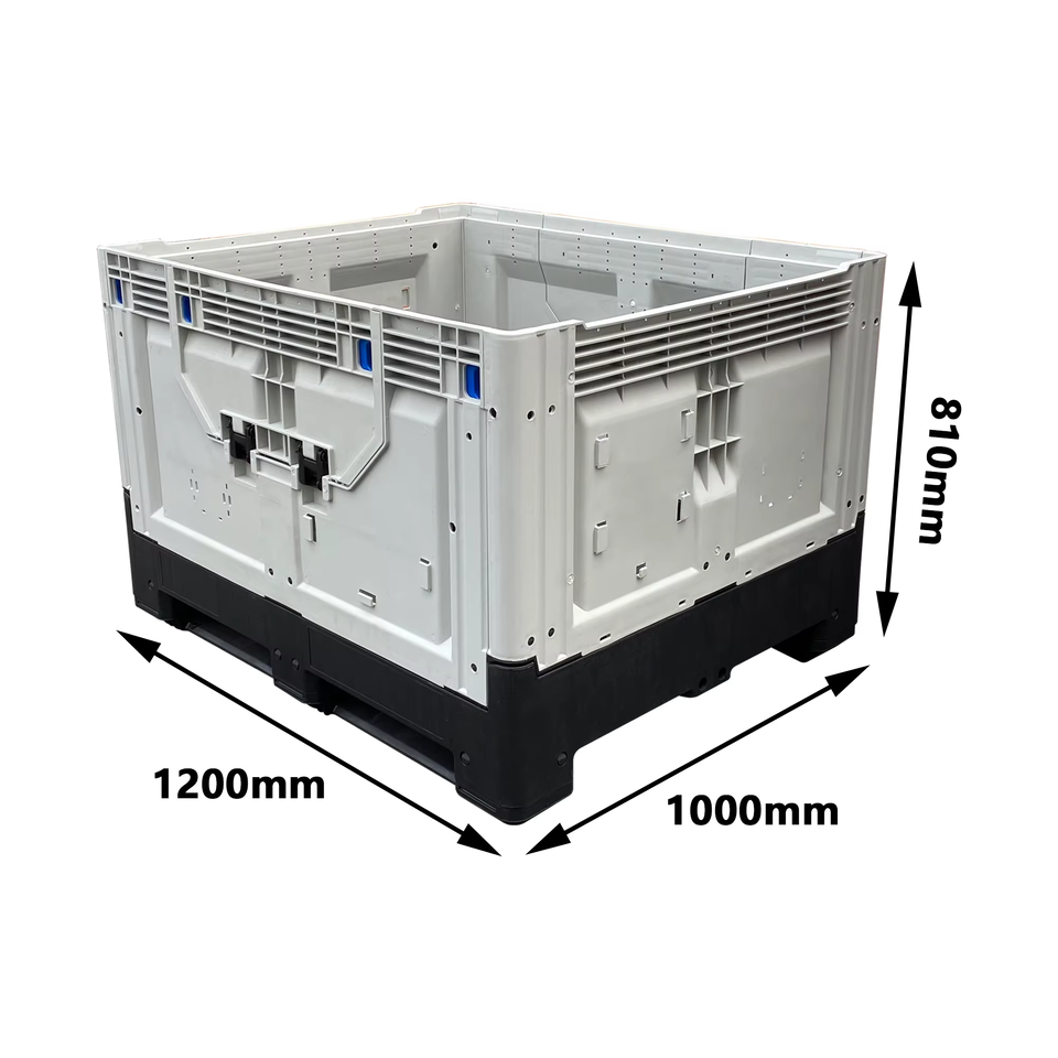 กล่องพาเลทพับได้สองประตูแบบปิด สำหรับเก็บผลิตผลสด พร้อมช่องเข้าด้านยาว ใช้ซ้ำได้สำหรับการขนส่ง