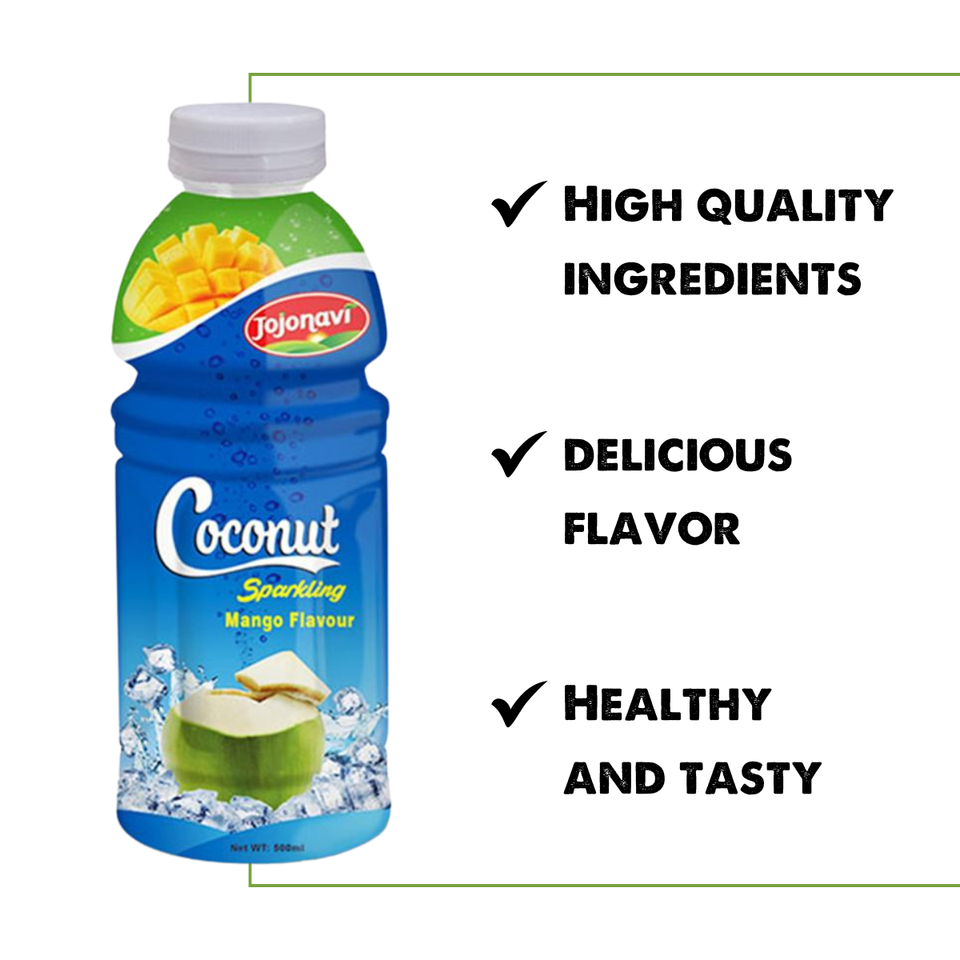 Jojonavi น้ำมะพร้าวประกายมะม่วง500มล. ISO ฮาลาลโคเชอร์ผู้ผลิตขายส่งพร้อมฉลากส่วนตัว