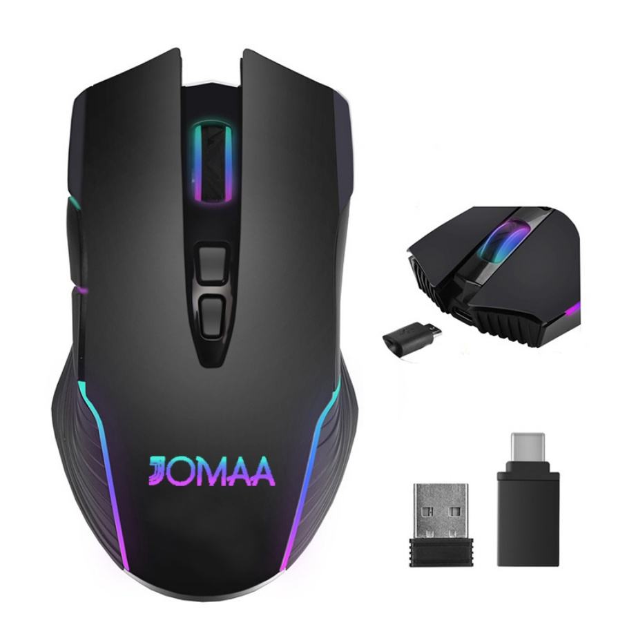 Jomaa เมาส์เล่นเกมไร้สาย2.4G เมาส์แบบชาร์จใหม่ได้เมาส์1600CPI พร้อมตัวรับสัญญาณ USB & type C เมาส์ jiggler สำหรับบ้านสำนักงาน