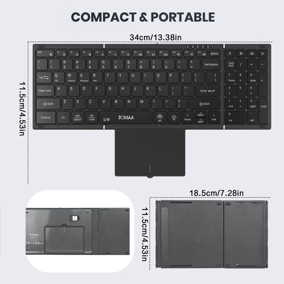 คีย์บอร์ดไร้สาย JOMAA แบบพกพา รองรับการเชื่อมต่อแบบ Dual Mode พร้อมไฟ RGB แบ็คไลท์ ทัชแพดและปุ่มตัวเลข คีย์บอร์ดพับได้แบบชาร์จไฟได้