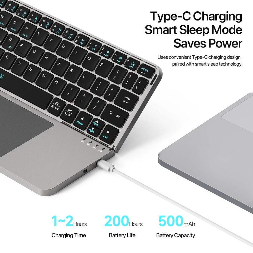 คีย์บอร์ดไร้สายแบบพับได้พร้อมทัชแพด