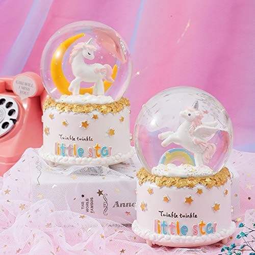 Jormey ลูกบอลหิมะทำจากแก้วลายยูนิคอร์นหิมะพร้อมไฟหลากสีของขวัญวันคริสต์มาสและวันเกิดสำหรับเด็ก