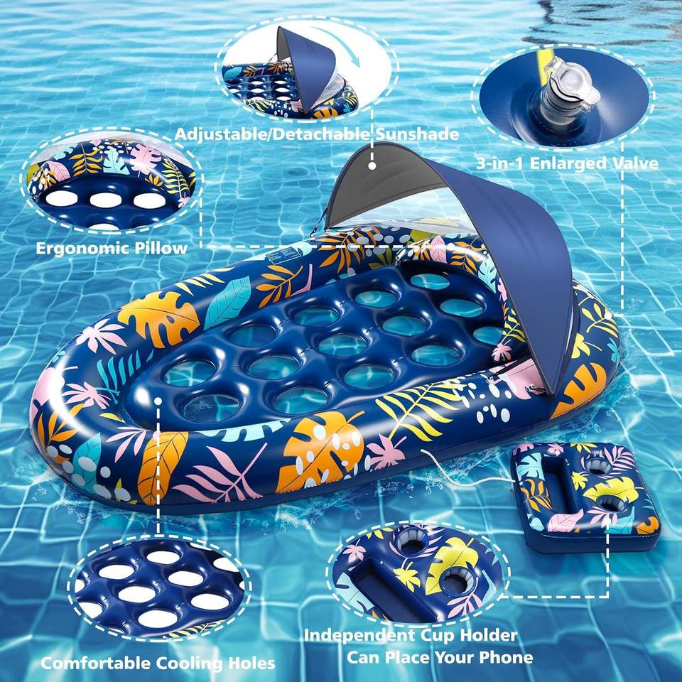 เก้าอี้ลอยน้ำสำหรับสระว่ายน้ำ JOSEN รุ่นโมเดิร์น พร้อมหลังคา ที่วางแก้ว หมอน ปรับระดับได้ ถอดออกได้ ผ้าคลุมกันแดด PVC แบบเป่าลม