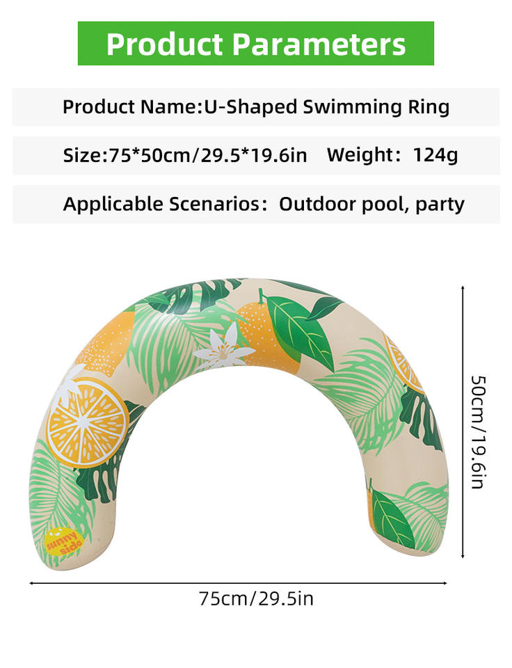 ห่วงยางว่ายน้ำพีวีซีสำหรับผู้ใหญ่ JOSEN รูปทรงตัวยู ลายผลไม้ พร้อมที่พักแขน