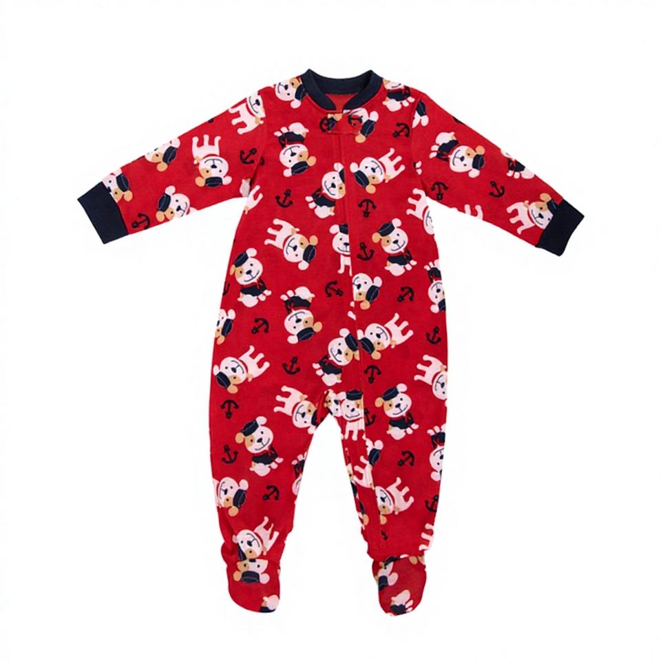 ชุดรอมเปอร์เด็กทารก JOYUAN GARMENT MANUFACTURER รุ่น BR190805 - ลายสุนัขสีแดง สำหรับเด็กแรกเกิด เสื้อผ้าสั่งทำได้ แบบ unisex ลายสัตว์ ชุดนอนเด็กแบบมีเท้า